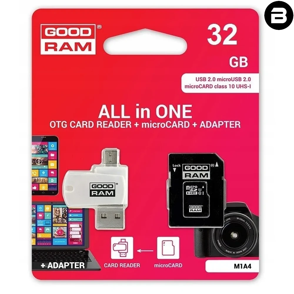 GOODRAM czytnik kart pamięci USB A + Micro USB ALL IN ONE M1A4 + karta microSD 32GB z adapterem