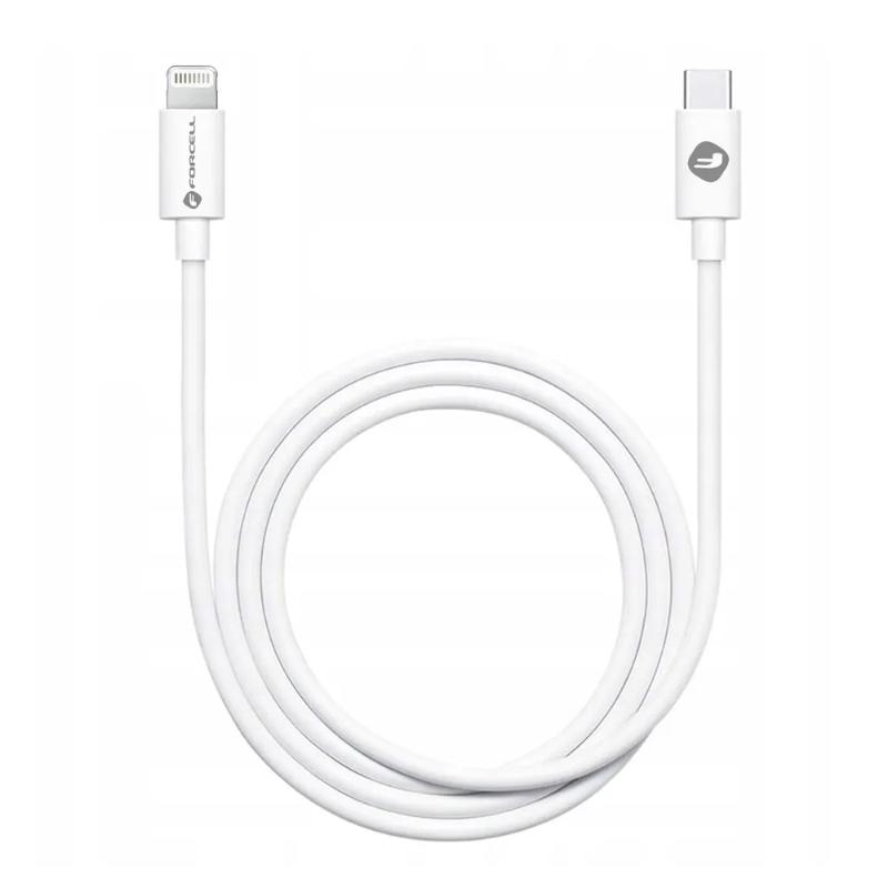 Kabel Forcell USB-C ze złączem Lightning pozwala szybko naładować iPhone’a dzięki obsłudze Power Delivery 27W. Umożliwia też przesyłanie danych z prędkością do 480 Mb/s. Akcesorium dostępne w kompaktowej tubie.