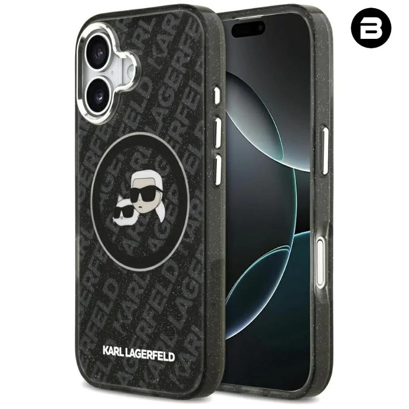 KARL LAGERFELD futerał do IPHONE 17 kompatybilny z MagSafe KLHMP17SHMKBKCHOK (IML Glitter K&C Heads Logo) czarny